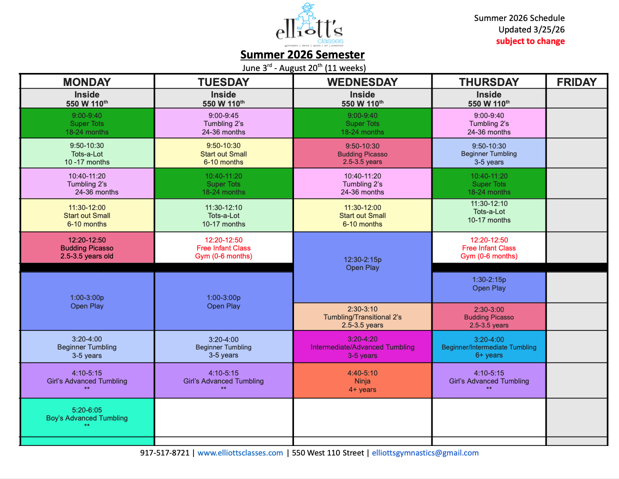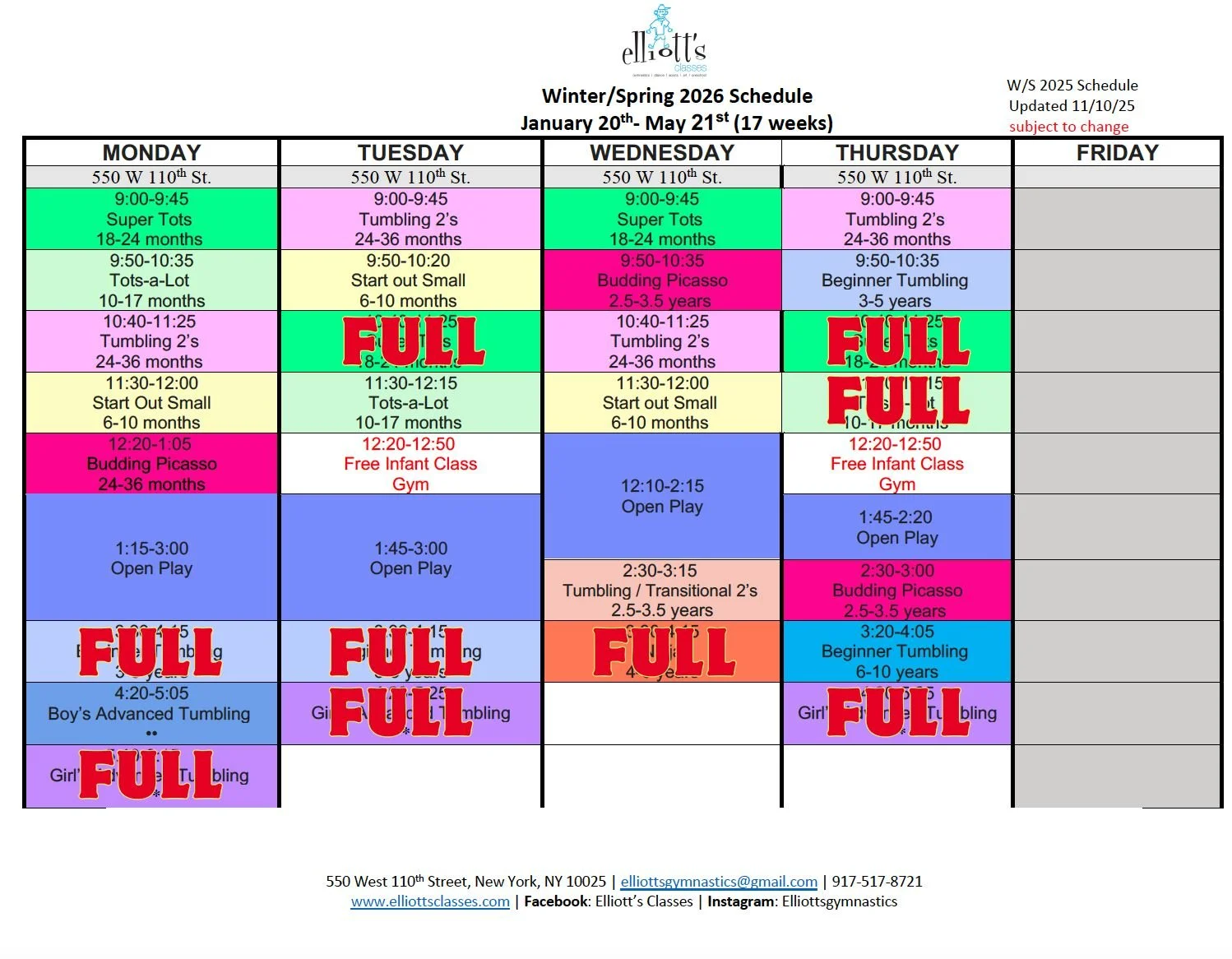 Below you can find our 2025/2026 schedules. The second page has pricing and closures.